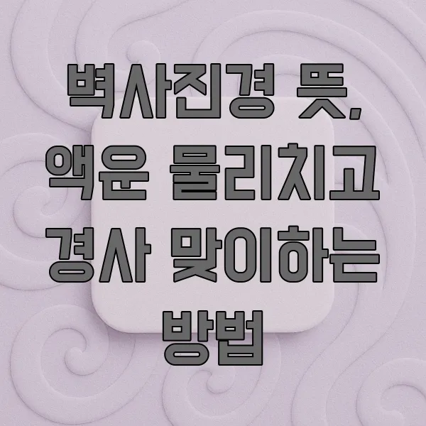 새해를 맞이하며, 혹은 중요한 일을 앞두고 우리는 흔히 "벽사진경(辟邪進慶)"이라는 말을 떠올리곤 합니다. 과연 이 고사성어는 어떤 의미를 담고 있을까요? 🤔 액운을 물리치고 경사를 맞이한다는 뜻의 '벽사진경', 그 속뜻과 함께 2025년, 우리 모두에게 행운을 가져다줄 수 있는 방법들을 함께 알아볼까요? 🤗