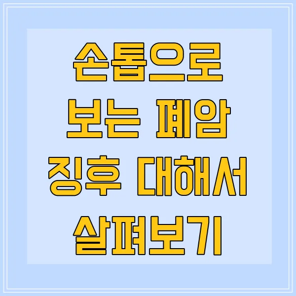 혹시 손톱의 작은 변화가 건강에 큰 경고가 될 수 있다는 사실, 알고 계셨나요? 우리가 무심코 지나치는 손톱의 상태는 폐암 징후를 시사할 수 있습니다. 작은 손톱에 담긴 신호를 조금 더 주의 깊게 살펴보면, 자신의 건강을 지키는 데 큰 도움이 될 수 있답니다. 이번 포스팅에서는 손톱 변화의 중요성과 함께, 폐암 징후, 검사 방법, 그리고 예방 관리까지 다양한 이야기를 나눠보려고 해요. 여러분도 함께 손톱의 의미를 알아가보면 좋겠어요!