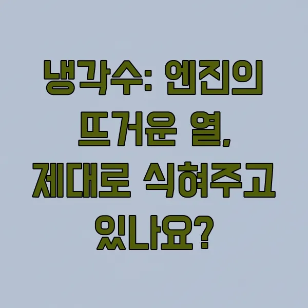 💧 냉각수: 엔진의 뜨거운 열, 제대로 식혀주고 있나요?