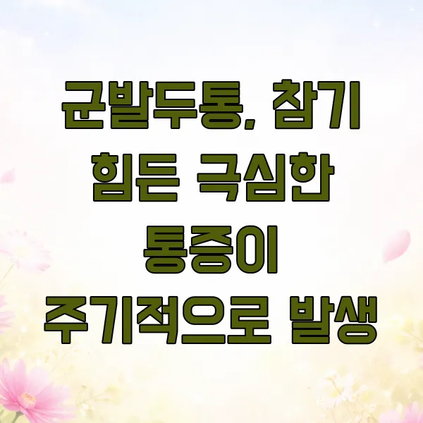 군발두통은 다른 두통에 비해 빈도는 낮지만, 통증의 강도가 매우 극심해서 '자살 두통'이라고 불릴 정도로 괴로운 통증을 유발해요. 주로 머리 한쪽, 특히 눈 주변이나 관자놀이 부위에 참기 힘든 통증 이 집중적으로 나타나죠. 통증의 지속 시간은 15분에서 3시간 정도이며, 하루에 여러 차례, 특정 기간에 집중적으로 나타나는 특징이 있습니다.