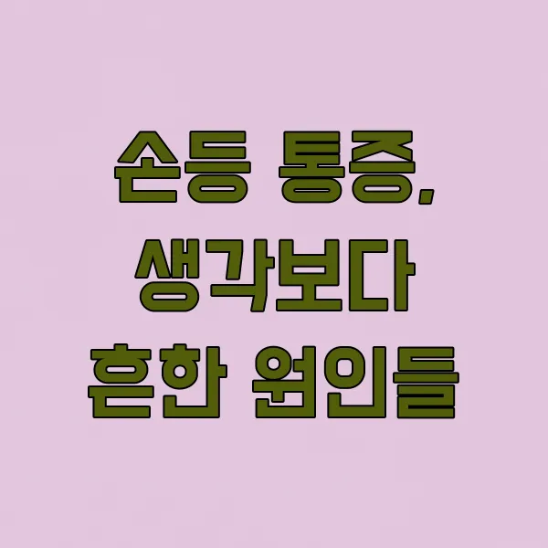 오늘은 손등 통증을 유발하는 흔한 원인들을 함께 알아보고, 혹시 나에게도 해당하는 건 아닌지 점검해보는 시간을 가져볼게요. 정확한 정보로 걱정을 덜고, 건강한 손을 지킬 수 있도록 도와드릴게요!