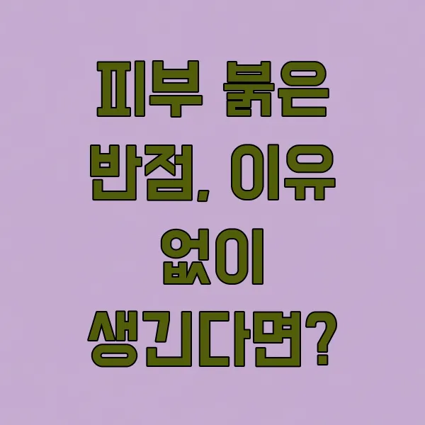 갑자기 피부에 이유 모를 붉은 반점이 생겨 당황스러우셨나요? 사소하게 넘어갈 수도 있지만, 때로는 건강 신호일 수 있답니다. 붉은 반점의 다양한 원인을 알아보고, 어떻게 대처해야 할지 함께 살펴봐요!