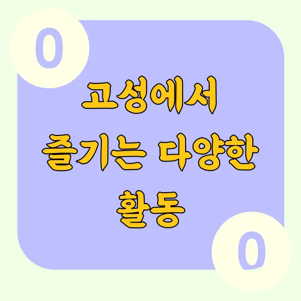 - 계절별 액티비티 정보 확인: 고성은 계절에 따라 즐길 수 있는 액티비티가 다릅니다. 여행 전에 계절별 액티비티 정보를 확인하고, 적절한 복장과 장비를 준비하는 것이 중요해요!