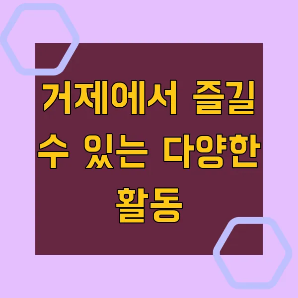 자, 어떠셨나요? 거제에서 즐길 수 있는 다양한 활동들! 생각보다 훨씬 많죠? 😄 이 외에도 숨겨진 명소와 즐길 거리가 가득하니, 여러분만의 특별한 거제 여행을 계획해보세요! 💕 다음엔 더욱 알차고 재미있는 정보로 찾아올게요! 😉