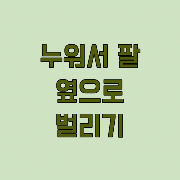 팔뚝을 천천히 바닥에서 들어 올려 몸 바깥쪽으로 돌려줍니다. 이때 팔꿈치가 옆구리에서 떨어지지 않도록 고정 하는 것이 핵심입니다. 통증 없이 편안하게 움직일 수 있는 만큼만 움직여야 해요.