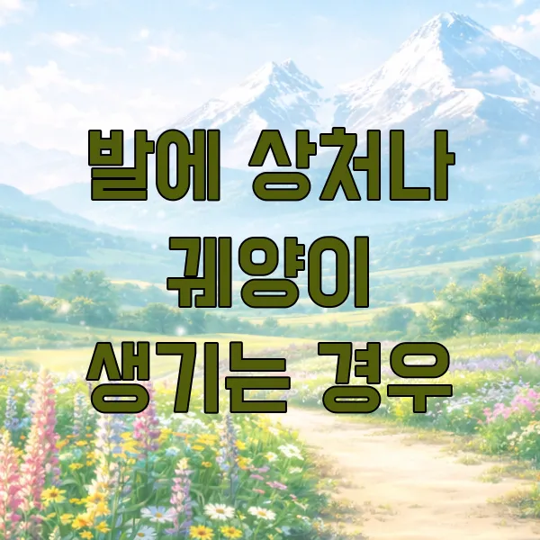 특히 발가락 사이나 발톱 주변, 발꿈치 등에 상처가 생겼다면 더욱 주의가 필요합니다. 만약 상처 부위에서 진물이 나거나 붓고 통증이 동반된다면 즉시 의료기관을 찾아야 합니다.