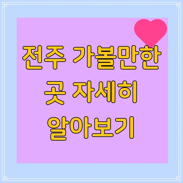 안녕하세요! 혹시 여행 계획 세우고 계신가요? 마음이 설레는 여행지, 바로 전주 를 소개하려고 해요. 전주하면 떠오르는 아름다운 한옥마을, 생각만 해도 기분 좋아지지 않나요? 전주는 단순히 예쁜 풍경만 가진 곳이 아니랍니다. 깊은 역사와 문화가 숨 쉬는 곳 이기도 하죠. 전주 가볼만한 곳들을 꼼꼼히 살펴보면서 전주의 매력에 푹 빠져 보실래요? 맛있는 음식부터 고즈넉한 한옥, 그리고 근교 여행까지! 전주에서 잊지 못할 추억을 만들 수 있도록 제가 도와드릴게요. 자, 그럼 전주의 역사와 문화, 맛집, 한옥마을 즐기는 법, 그리고 근교 여행지까지 차근차근 알아볼까요?