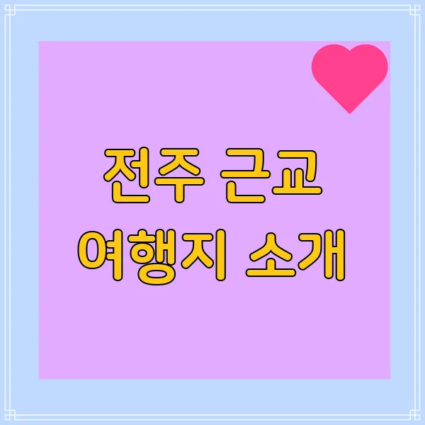 전주에서 신나게 놀고, 맛있는 것도 잔뜩 먹었다면?! 이제 슬슬 근교로 눈을 돌려볼까요? 전주는 주변에 숨겨진 보석 같은 여행지들이 정말 많거든요! 마치 꿀단지 주변에 흩뿌려진 꽃가루처럼요!🌼 자, 그럼 전주를 벗어나 1시간~1시간 30분 거리에 위치한 매력만점 근교 여행지들을 탐험해 보는 건 어떠세요? 전주에서 당일치기로도 충분히 다녀올 수 있는 곳들이랍니다! (꿀팁!😉)