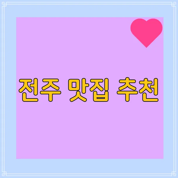 전주의 맛집들은 단순히 음식만 맛있는 게 아니라, 전주의 역사와 문화, 그리고 사람들의 정을 느낄 수 있는 특별한 공간이에요. 맛있는 음식과 함께 잊지 못할 추억을 만들어 보세요! 💕 전주 맛집 여행, 후회하지 않으실 거예요! 😉