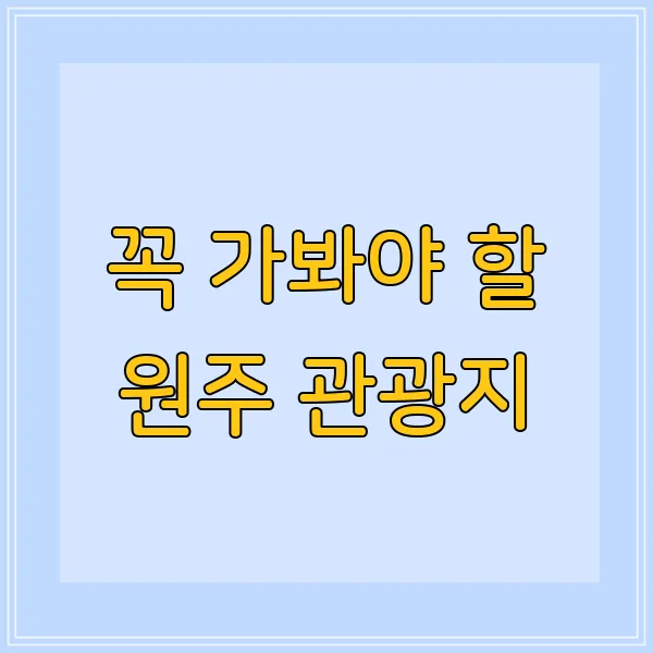 자, 원주 여행 계획 세우고 계시죠? 그럼 지금부터 눈 크게 뜨고 따라오세요~! 원주에서 꼭 가봐야 할, 사진 찍기 좋은 곳, 경치 좋은 곳, 역사 깊은 곳까지~ 제가 싹 다 정리해 드릴게요! 마치 제가 프라이빗 투어 가이드라도 된 것처럼 말이죠! 😉