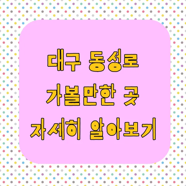 안녕하세요! 혹시 대구의 핫플레이스, 동성로 를 아시나요? 요즘 핫하다 못해 뜨겁다는 그곳! 저도 얼마 전에 다녀왔는데, 정말 시간 가는 줄 모르고 재밌게 놀다 왔답니다. 맛집 부터 쇼핑, 문화생활까지 없는 게 없는 동성로 ! 대구 동성로 가볼만한 곳, 제가 자세히 알려드릴게요. 동성로 핫플레이스 추천 부터 숨겨진 동성로 맛집 탐방, 그리고 동성로에서 즐기는 문화생활까지! 데이트 코스로 완벽한 동성로 명소들 도 소개해드릴 예정이니 기대해주세요! 자, 그럼 저와 함께 동성로 여행, 시작해 볼까요?